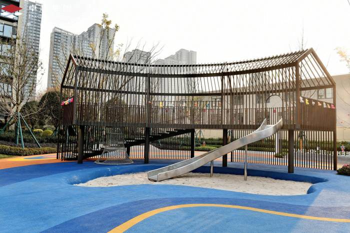 项目外立面接纳米白色及灰色复古真石漆,玻璃幕墙以蓝灰色为主,气概上沿袭古板川西特色,团结现代设计的手法,使用人字型坡屋顶,将川剧“水袖飘带”元素融入其中,极显萧洒、自由。景观的起承转合、新闻虚实将园内空间与自然空间融合扩展,形成多重空间序列,营造幽深宽阔的空间境界和意趣。