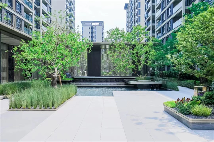 项目主打川西修建特色,以独吞的人文特征,将山水文化、庭院文化、书院文化融入现代生涯住宅,韵味浓重,有浑然天成之感。进入大门,入目即是艺术连廊——映水廊,廊架与水景团结,似乎置身山野林涧之中。归家蹊径上,特殊打造四序会客厅,亭外生态自然景物围绕,又是一番景致。入户花园空间,叠水景与木平台的巧妙团结,搭配大型乔木,营造出诗书余韵和闲暇逸致气氛。