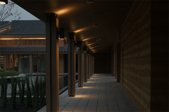 修建罗致地方修建特色斜屋顶、青瓦、原木构架、竹编等,色调古朴自然,带有浓郁的成都韵味。在空间结构上犹如卷轴画一样平常,随着路径的深入徐徐睁开,起承转合,有门、有巷、有院、有墙、有廊 ,游览其中,体会曲径通幽清静恬静。