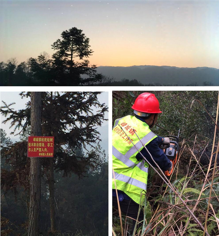项目简介:自2019年1月1日最先,在达州市宣汉县峰城镇辖区内开展的枯死及濒死松树的除治事情,包括采伐、就地销毁疫木、枝丫及处置惩罚伐桩等事情,并且对采伐区域内松林中风倒木、风折木、腐败木举行周全整理和焚毁事情。2019年6月尾已完工并顺遂通过政府验收。