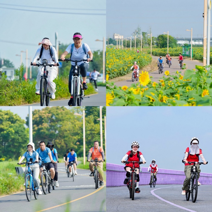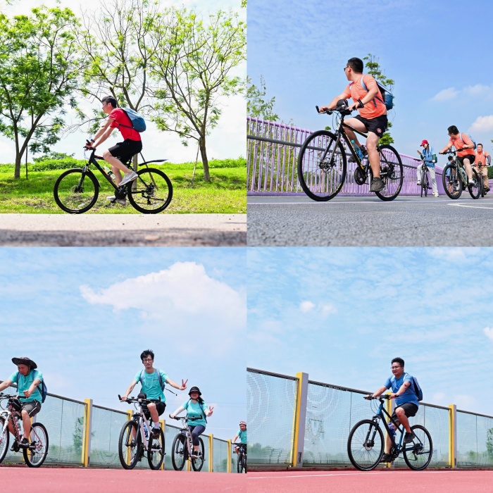绿道两旁,绿树成荫,花香四溢,云卷云舒,