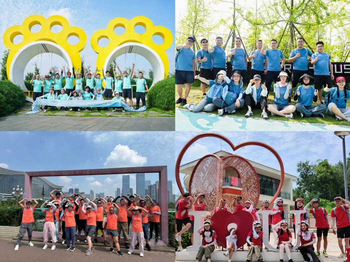 团队成员们身着鲜艳打扮,犹如一条流动的彩带,